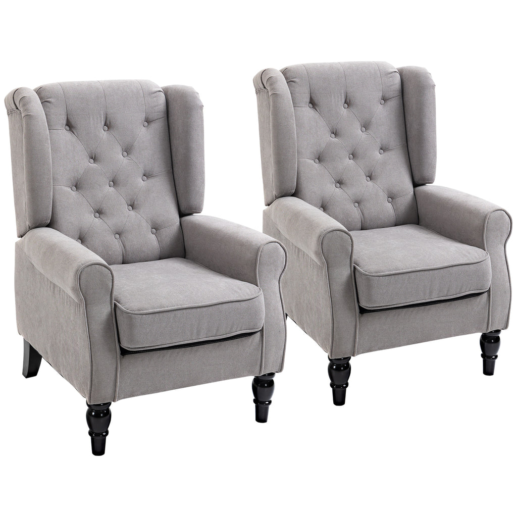 Button-Tufted Accent Chair with High Wingback, Rounded Cushioned Armrests and Thick Padded Seat, Set of 2, Gray