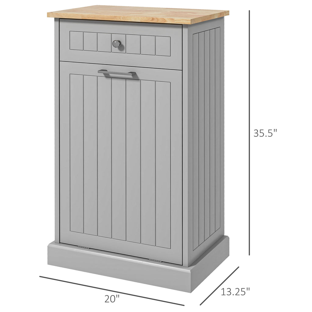 Kitchen Tilt Out Trash Bin Cabinet, Freestanding Recycling Cabinet Trash Can Holder With Drawer, Gray