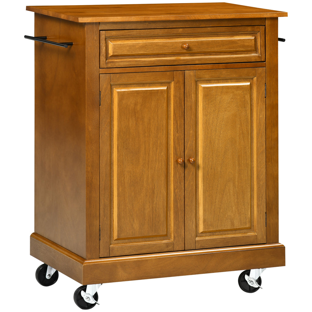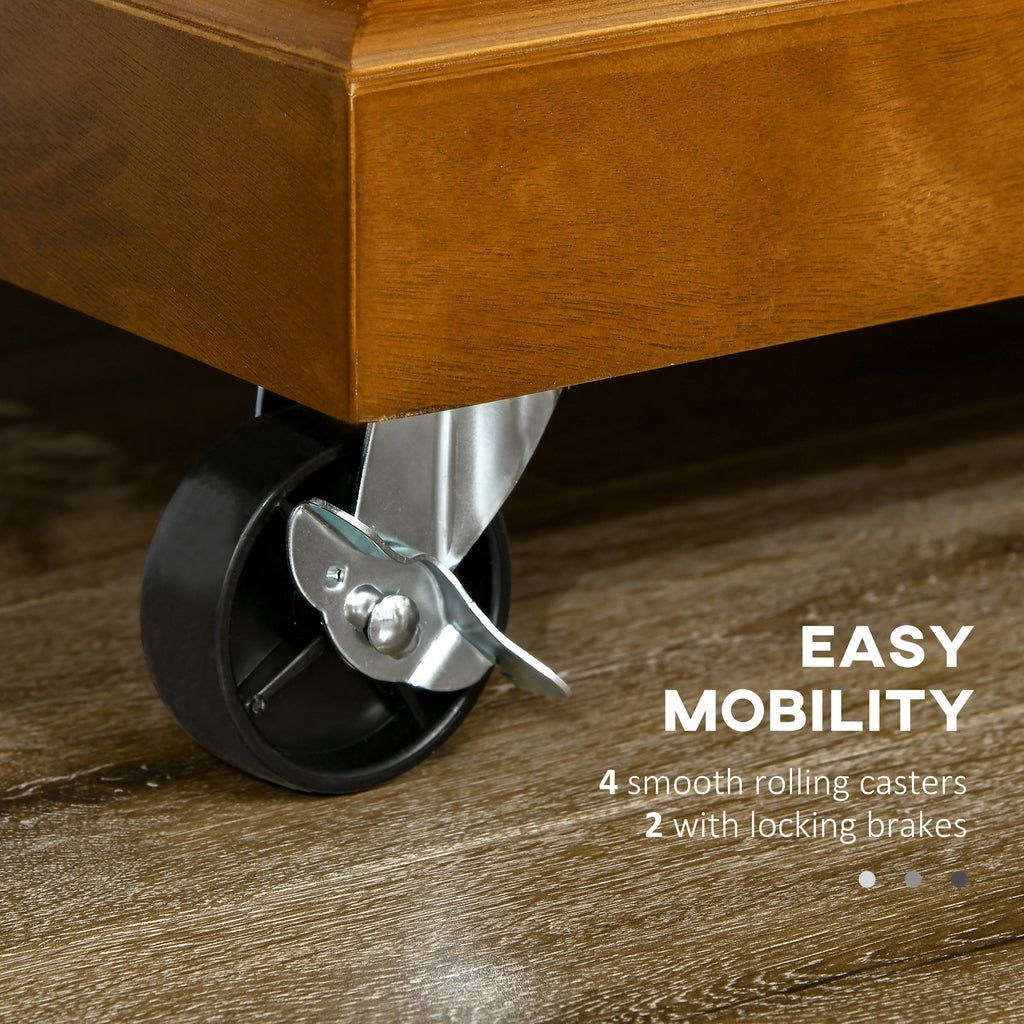 - - Easy Mobility: No matter what surface you need to take this kitchen island cart on, the four wheels help you get there effortlessly. Two wheels lock for safety when you need it in place.