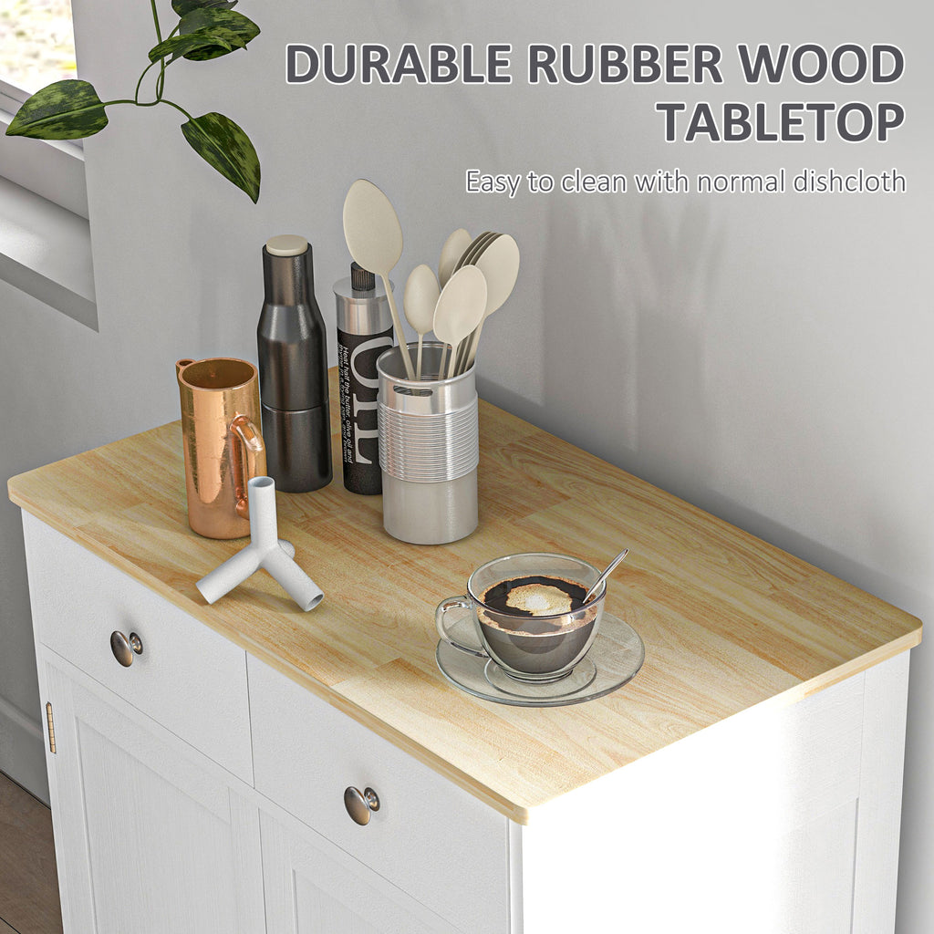 Sideboard Buffet Cabinet, Sideboard Floor Cupboard with Solid Wood Top, Adjustable Shelf, and 2 Drawers for Living Room