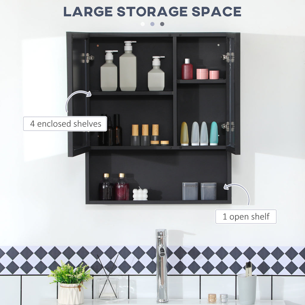 Wall-Mounted Medicine Cabinet, Bathroom Mirror Cabinet with Double Doors and Storage Shelves, Black
