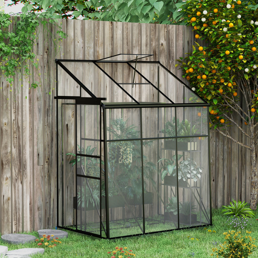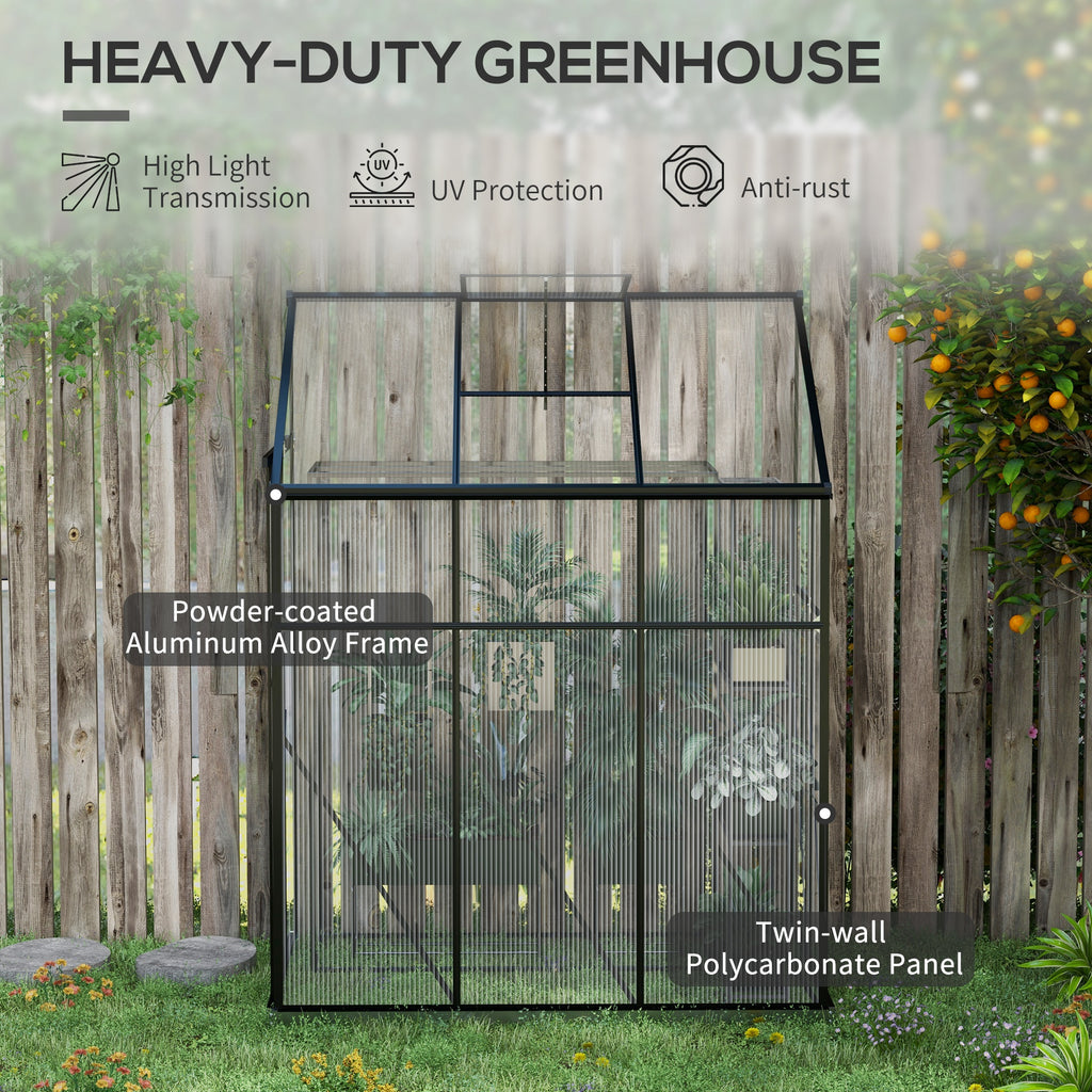 6' x 4' Walk-in Polycarbonate Greenhouse Lean-to Aluminum Green House with Rain Gutter and Foundation, Black