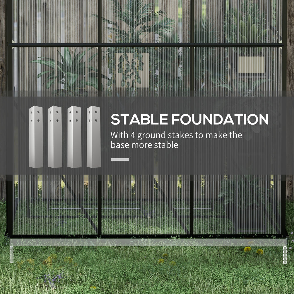 • - Secure Your Greenhouse: A powder-coated aluminum frame helps our outdoor greenhouse endure water. A lean-to design allows you to prop it up against an existing structure for extra support. The included foundation features stakes that push into soft ground to hold it in place.