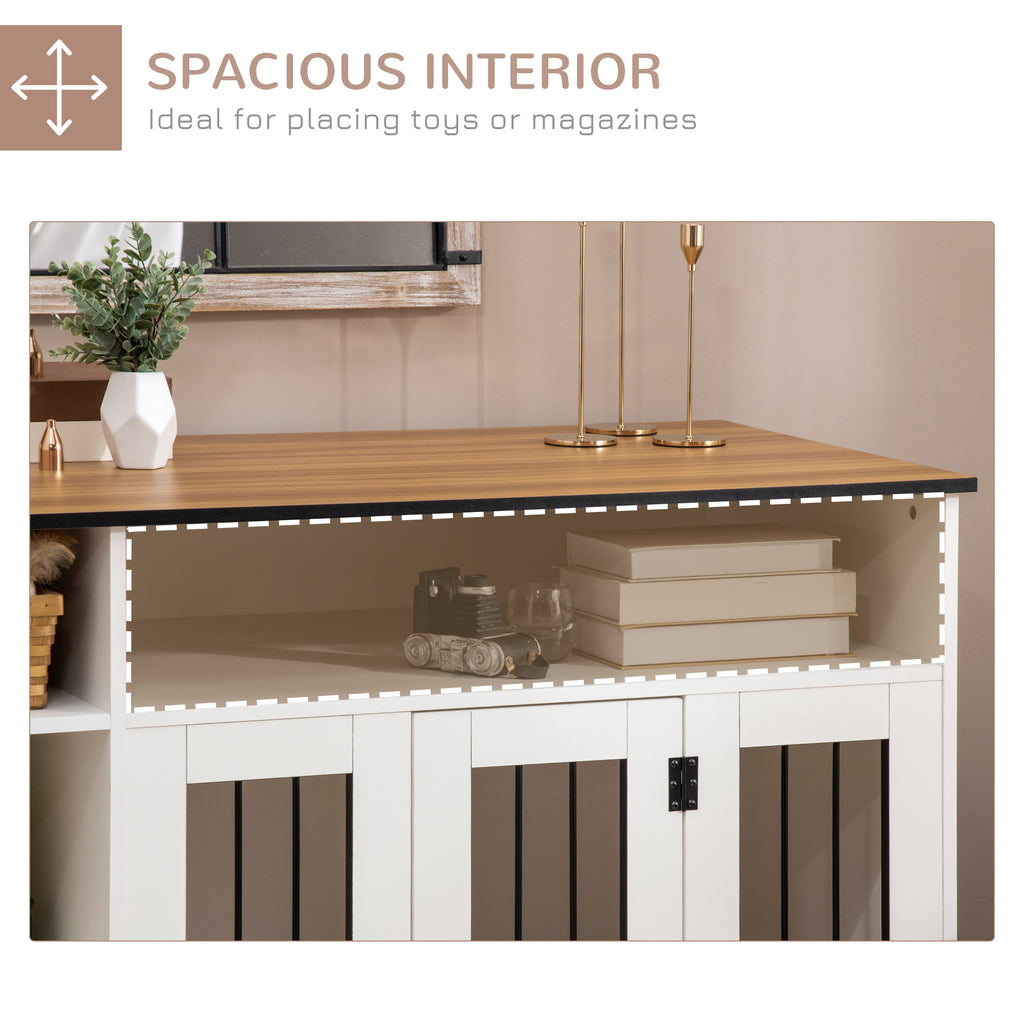 Small and Medium Dog Crate End Table with Extra Storage Space, Dog Crate Furniture with Large Tabletop, Pet Crate with Lockable Door, White