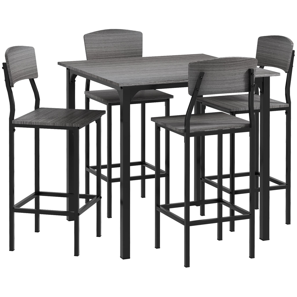 Counter Height Bar Table Set for 4, Square Kitchen Table and Chairs Set with Footrest, Metal Legs, Industrial Dinner Table Set for 4, Gray