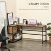 L-Shaped Home Office Writing Desk with Storage Shelf, Drawer, Industrial Corner PC Study Table Computer Workstation, Brown