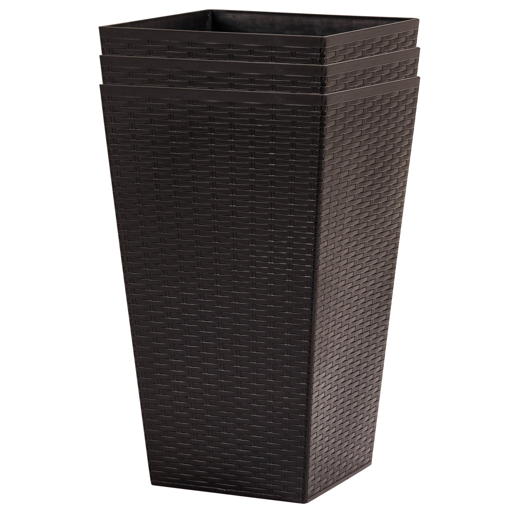 • - Set of 3: These flower pots come in an eye-catching rattan-like surface design, making them a great accent for any kind of decor.