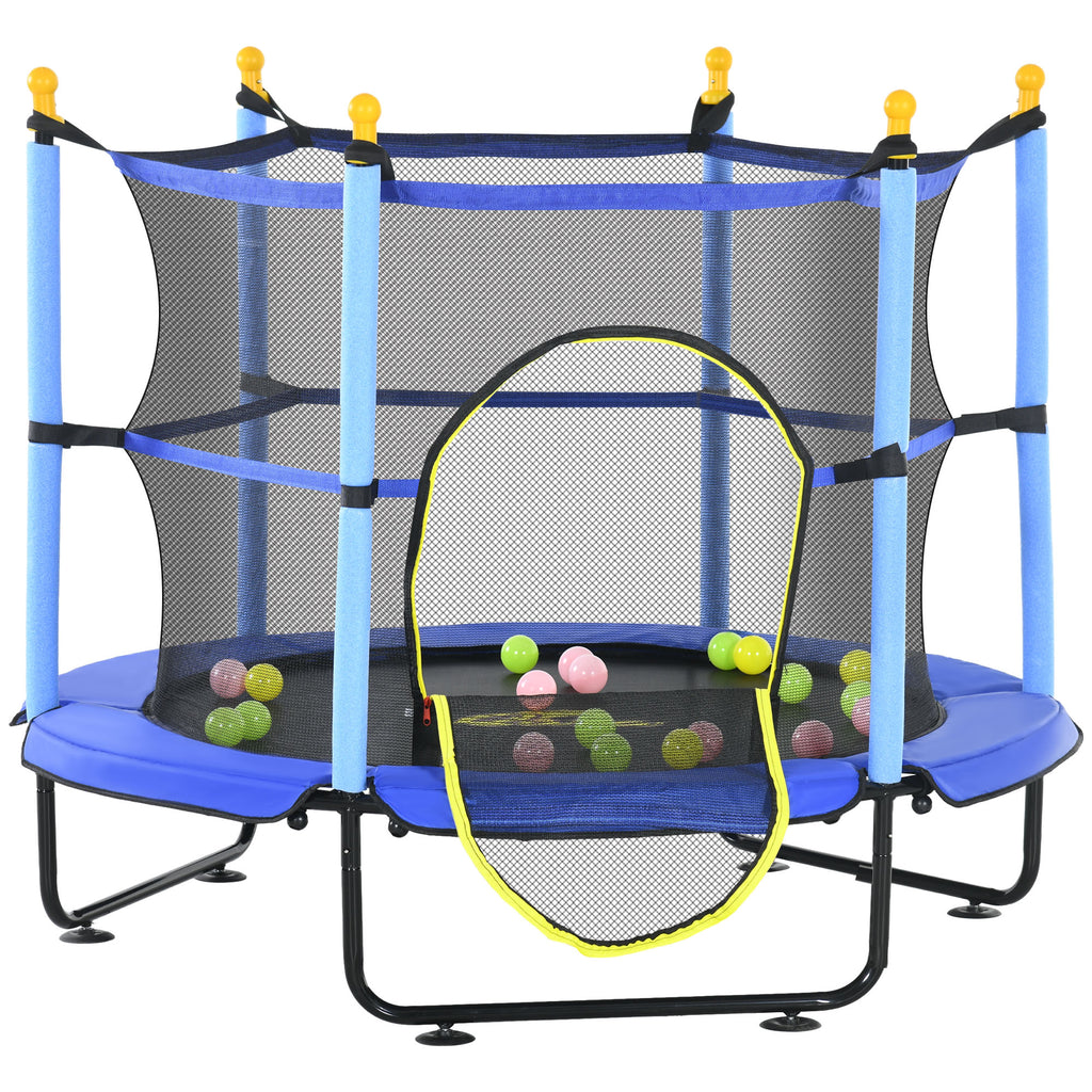 4.6' Trampoline for Kids with Safety Enclosure & Ball Pit, Blue