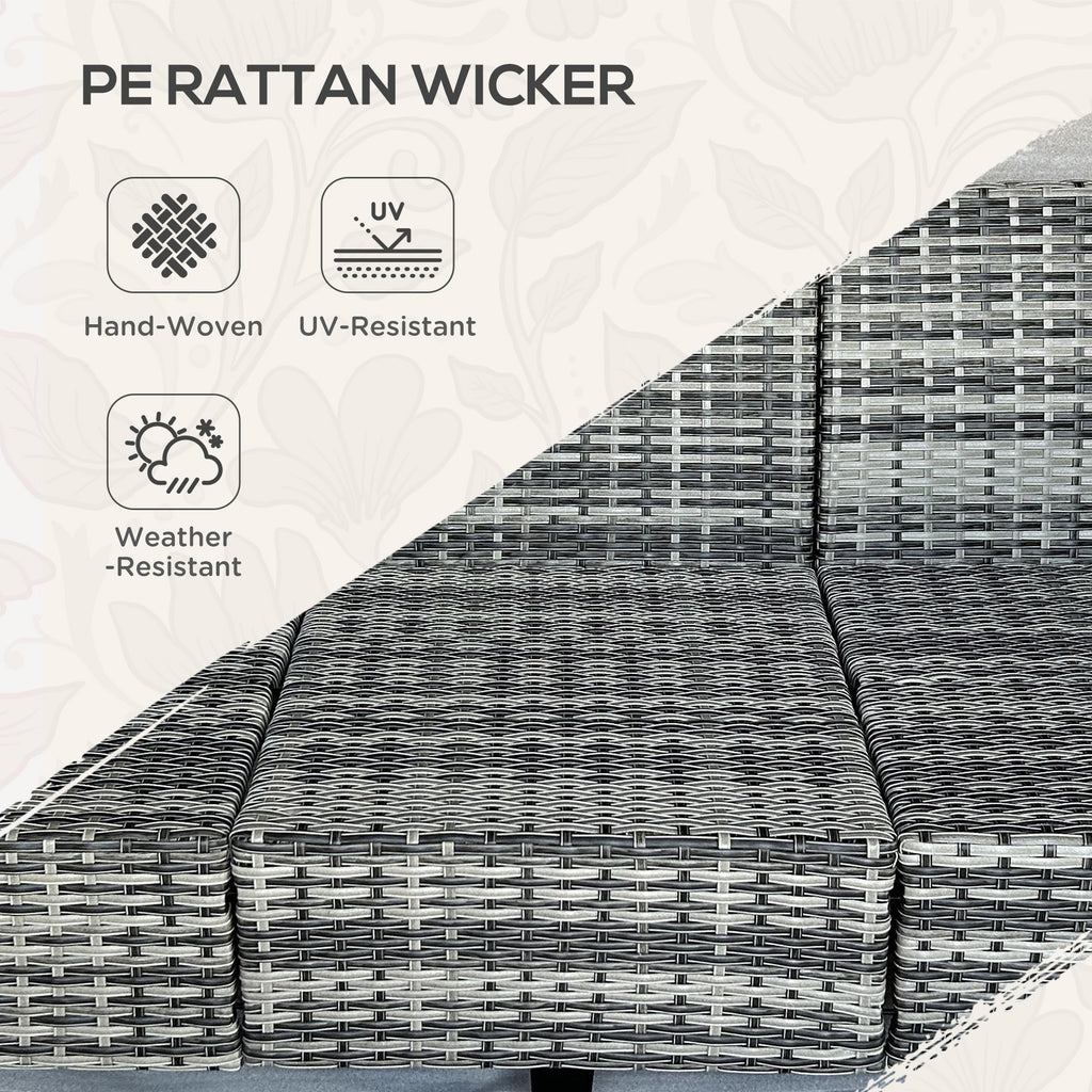 5-Piece Patio Furniture Set with PE Rattan Three-Seater Sofa, Armchairs, Footstools, Cushions, Mixed Gray
