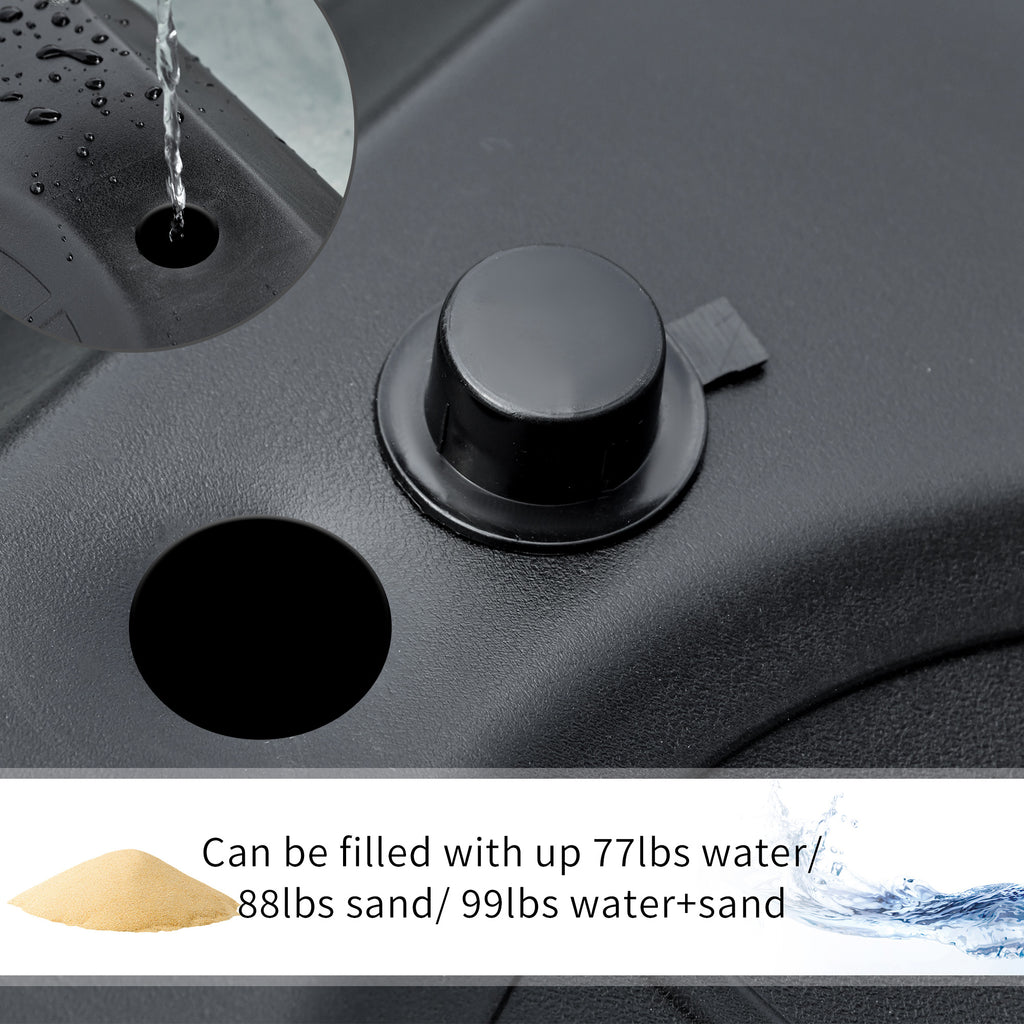 • - STABLE BASE: This outdoor basketball hoop will stay stable while you play. The bottom base is made with HDPE material and can be filled with 77 lbs of water, 88 lbs of sand, or maximum 99 lbs of water and sand to keep the basketball hoop to standing straight. The base includes a ball holder to keep your basketball in place.