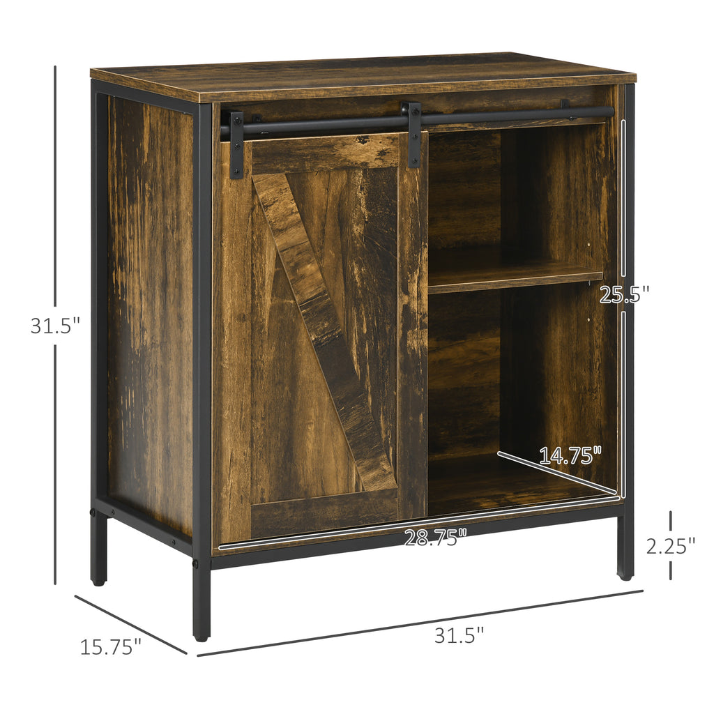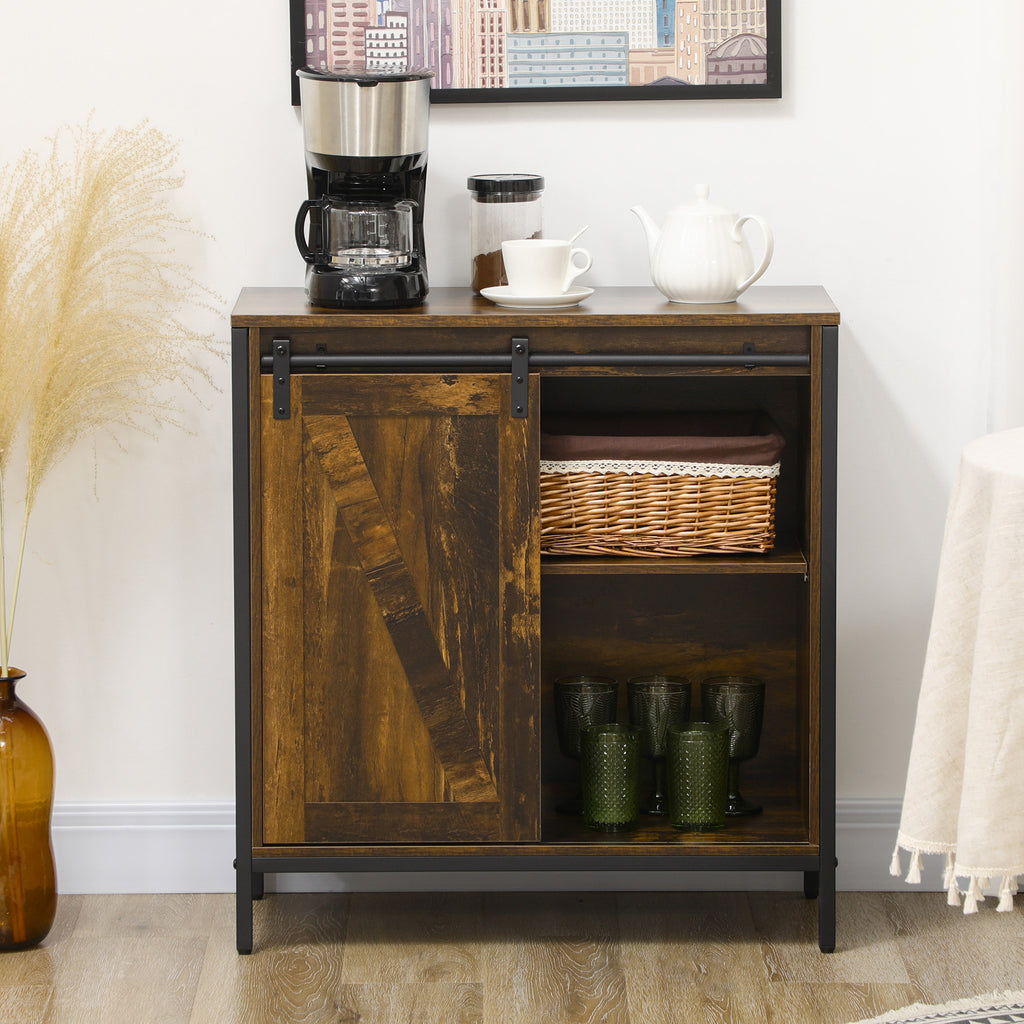 Buffet Cabinet, Farmhouse Sideboard, Bar Cabinet with Adjustable Shelf, Sliding Barn Door for Kitchen, Rustic Brown