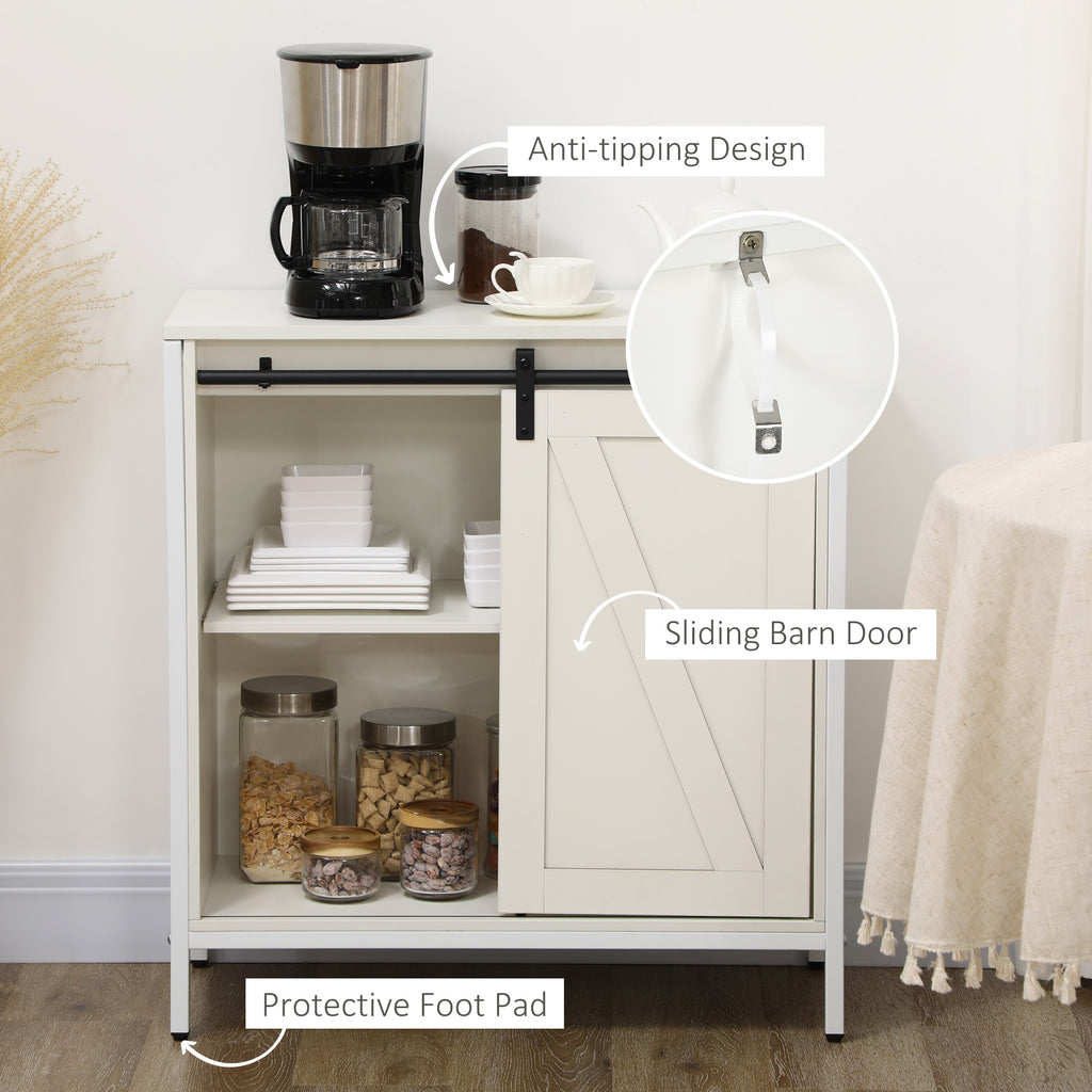 Buffet Cabinet, Farmhouse Sideboard, Bar Cabinet with Adjustable Shelf, Sliding Barn Door for Kitchen, White