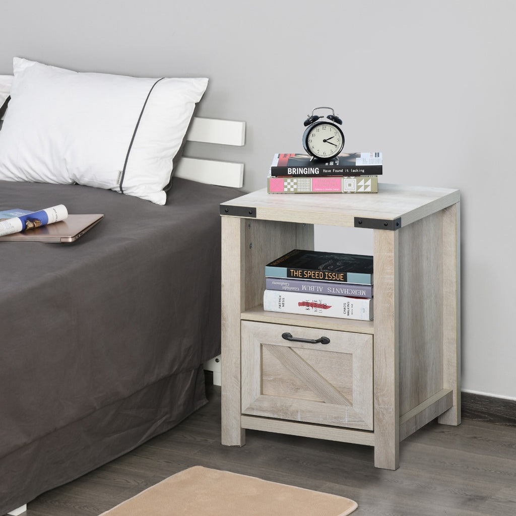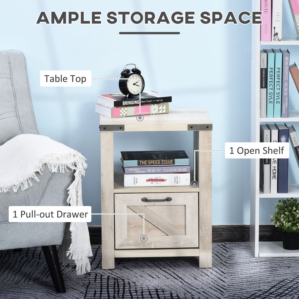 Industrial Side Table with 1 Drawer 1 Shelf Retro End Desk with Big Tabletop for Living Room Bedroom Dorm, Natural
