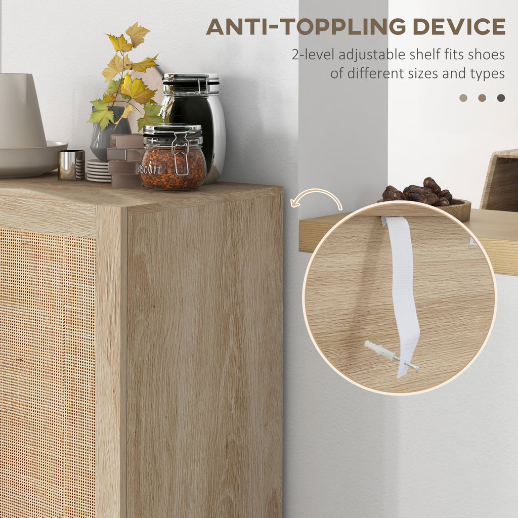 Kitchen Buffte Cabinet, Rattan Kitchen Storage Cabinet, Coffee Bar Cabinet with 2 Rattan Doors & Adjustable Shelves, Natural
