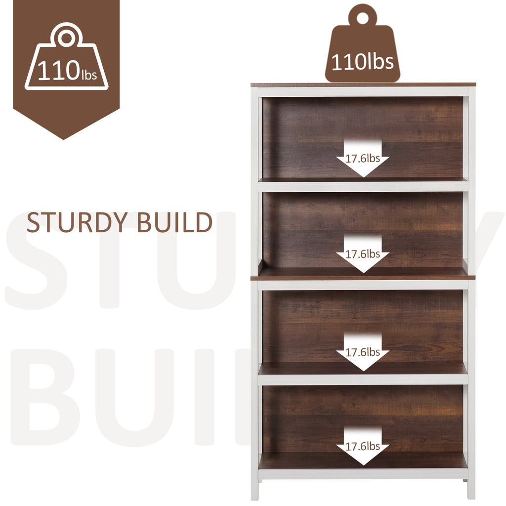 • - BUILT TO LAST: This 4 tier bookshelf has thick particleboard shelves and a solid frame to hold up to 17.6 lbs per shelf.