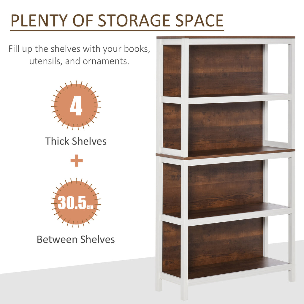 Modern 4 Tier Bookshelf Bookcase Utility Storage Shelf Organizer for Home Study Office with Display Rack White/Walnut