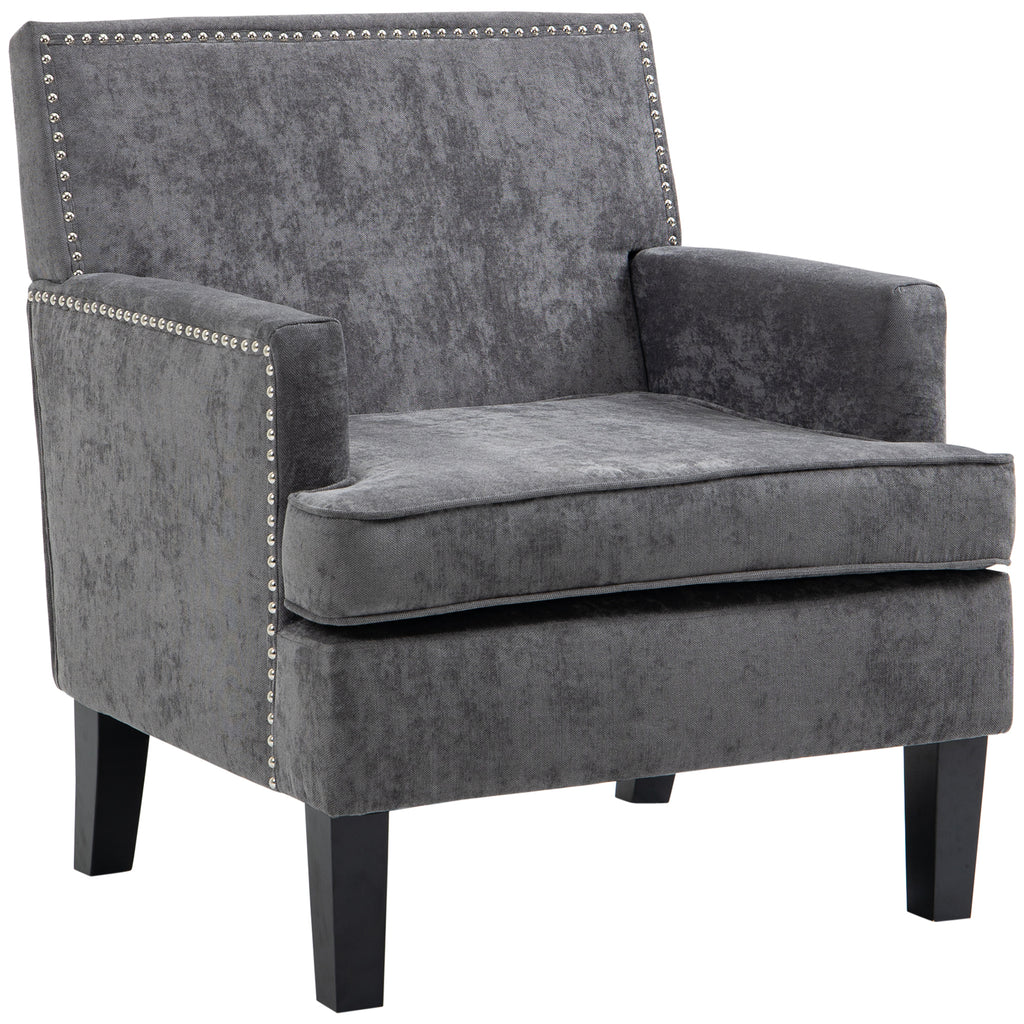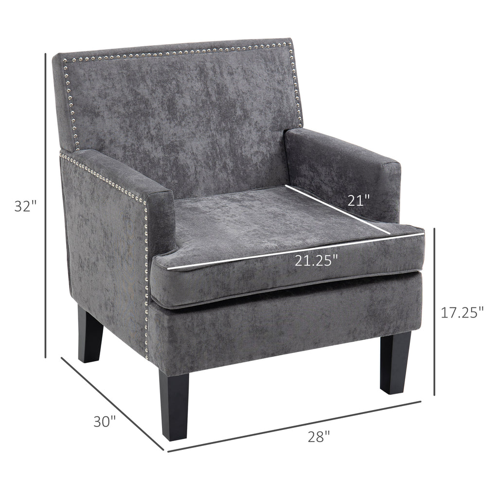 Modern Accent Chair, Upholstered Living Room Chair with Solid Wood Legs and Nailhead Trim, Armchair for Living Room, Bedroom, Home Office, Dark Gray