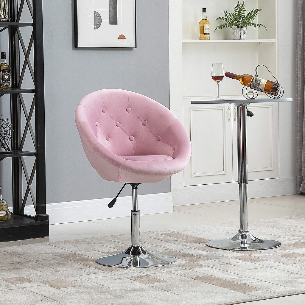 Modern Makeup Vanity Chair Round Tufted Swivel Accent Chair with Chrome Frame Height Adjustable for Living Room, Bedroom, Pink