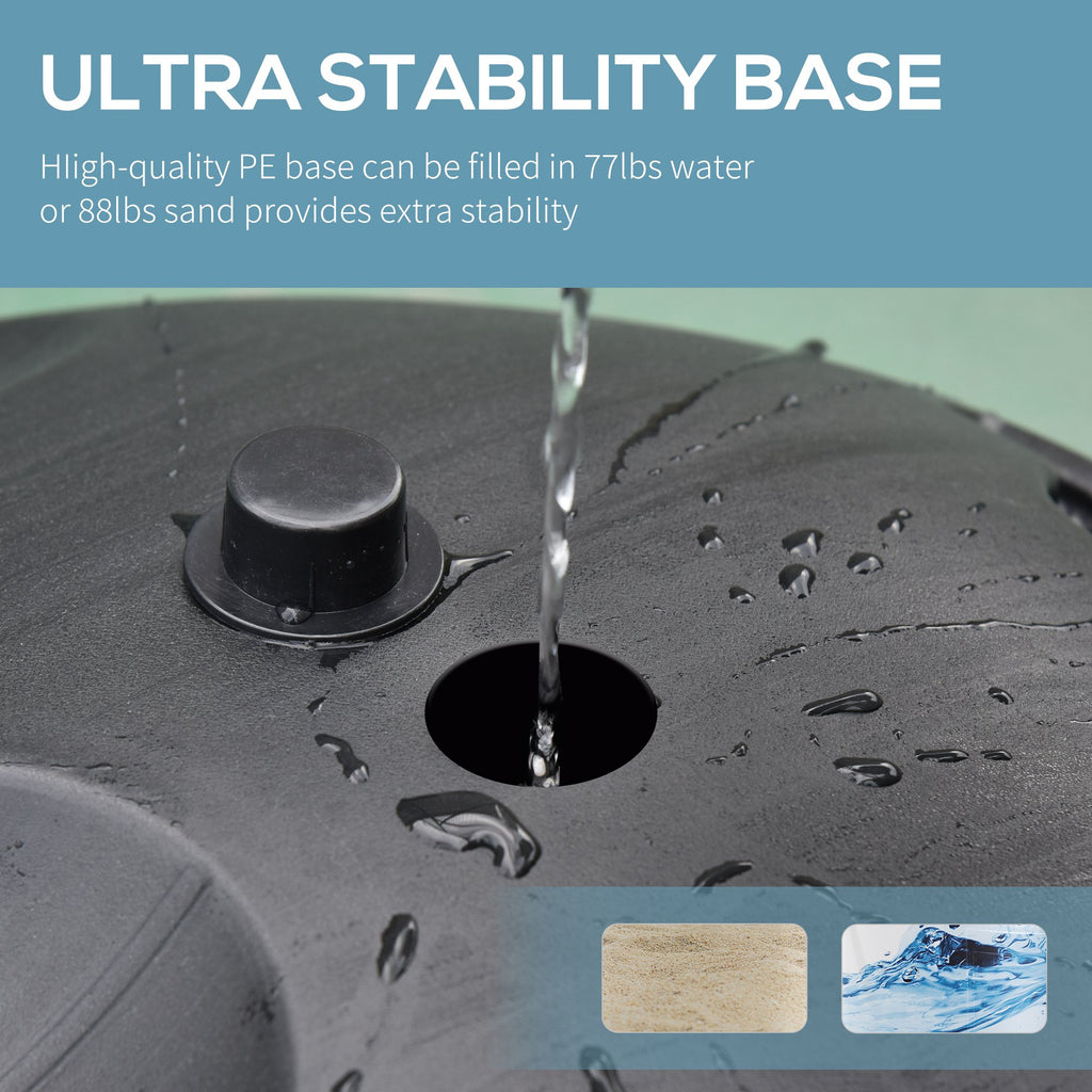 - - STABLE BASE: This outdoor basketball hoop will stay stable while you play. The bottom base is made with HDPE material and can be filled with 77 lbs of water, 88 lbs of sand, or maximum 99 lbs of water and sand to keep the basketball hoop to standing straight. The base includes a ball holder to keep your basketball in place.