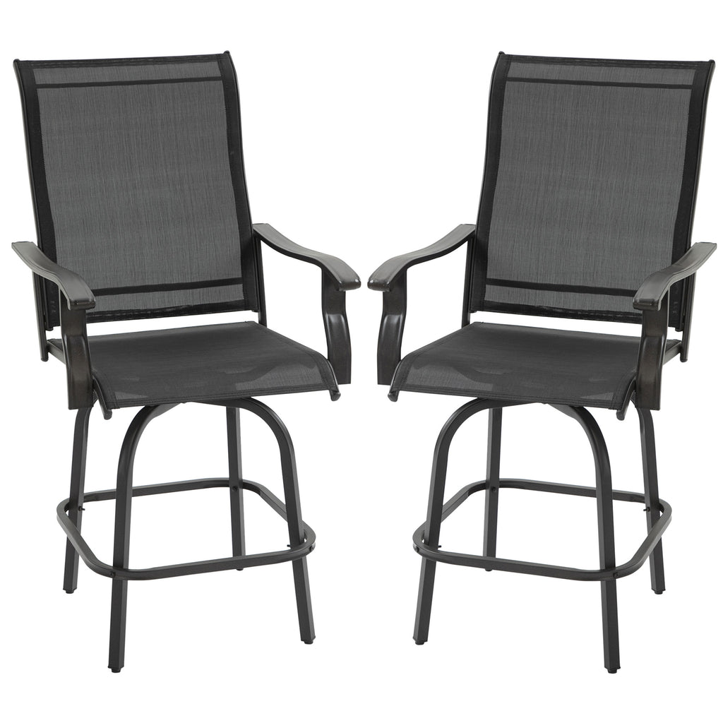 Set of 2 Outdoor Swivel Bar Stools with Armrests, Bar Height Patio Chairs with Steel Frame for Balcony, Poolside, Backyard, Black