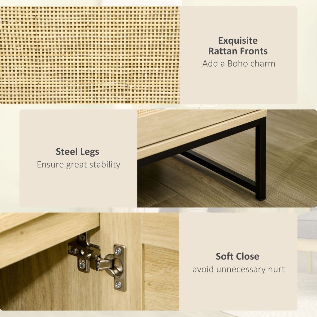 Sideboard Cabinet with Rattan Doors, Adjustable Shelf, Metal Base, Storage Cabinet for Living Room, Bedroom, Kitchen,