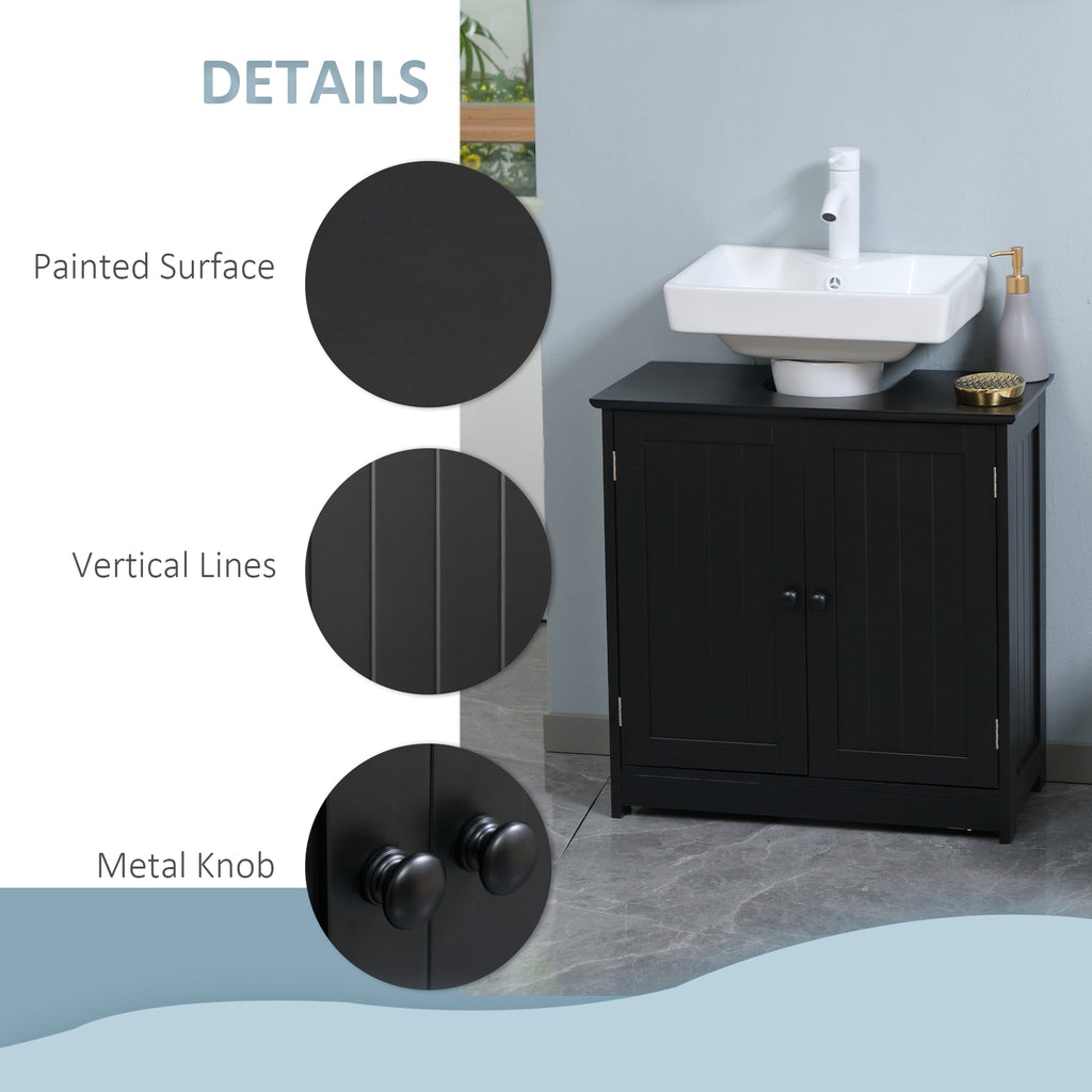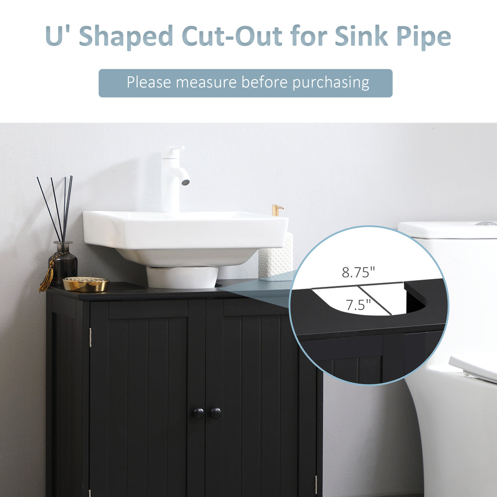 Under Sink Cabinet with 2 Doors and Shelf, Pedestal Sink Bathroom Vanity Furniture, Black