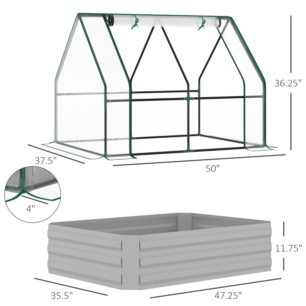 Raised Garden Bed with Greenhouse, Steel Outdoor Planter Box with Plastic Cover, Roll Up Window, Dual Use for Flowers, Vegetables, Clear
