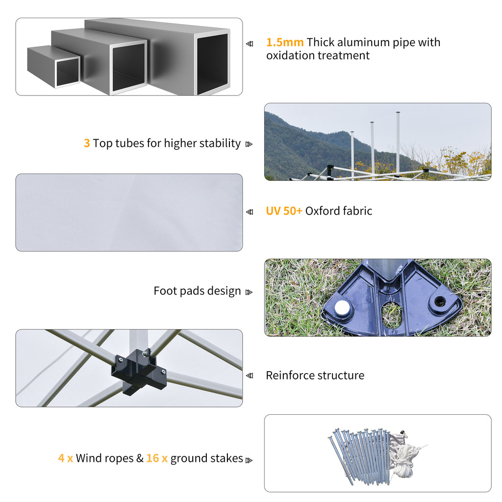 - - VERSATILE USAGE: Our easy open party pop up tent features a straight leg design and a 2-tier roof that offers an open-air feel for a variety of outdoor activities. This makes it great for weddings, events, outdoor parties, farmer's markets, and more!