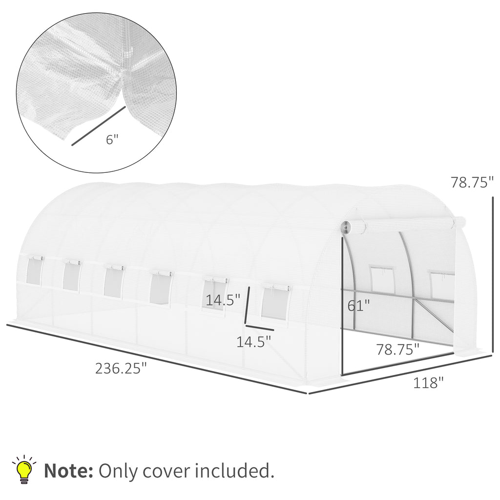 20' x 10' x 7' Greenhouse Replacement Walk-in PE Hot House Cover with 12 Windows Roll-Up & Zipper Door, White