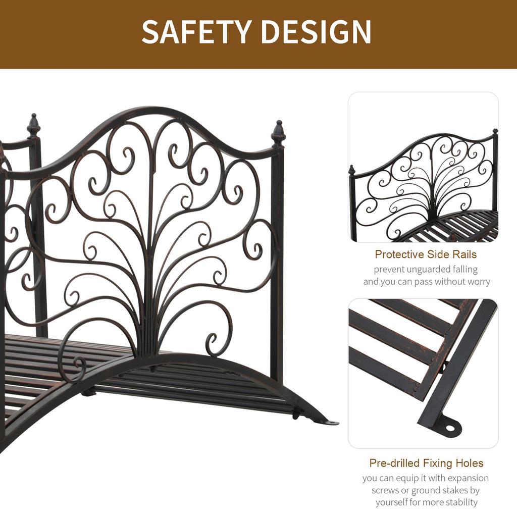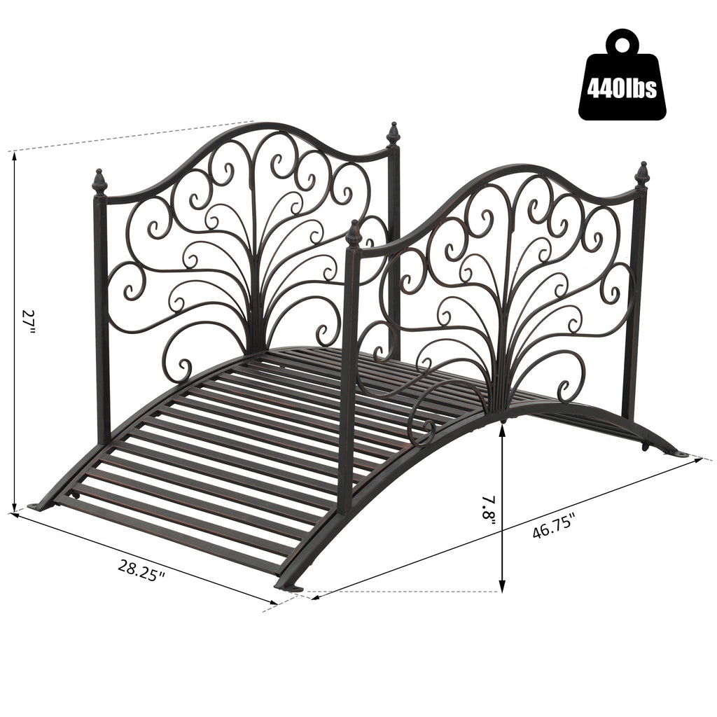 4' Metal Arch Backyard Garden Bridge with Safety Siderails, Delicate Scrollwork, & Easy Assembly, Black Bronze