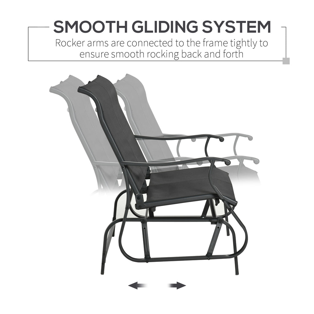 • - COMFORTABLE PATIO FURNITURE: Each seat of these gliders for outside is made with a breathable mesh fabric that stays cool in the summer sun and drains away rain to dry off fast. The outdoor glider chair and bench have comfortable curved armrests and relaxed backs so you can sit outside in style.