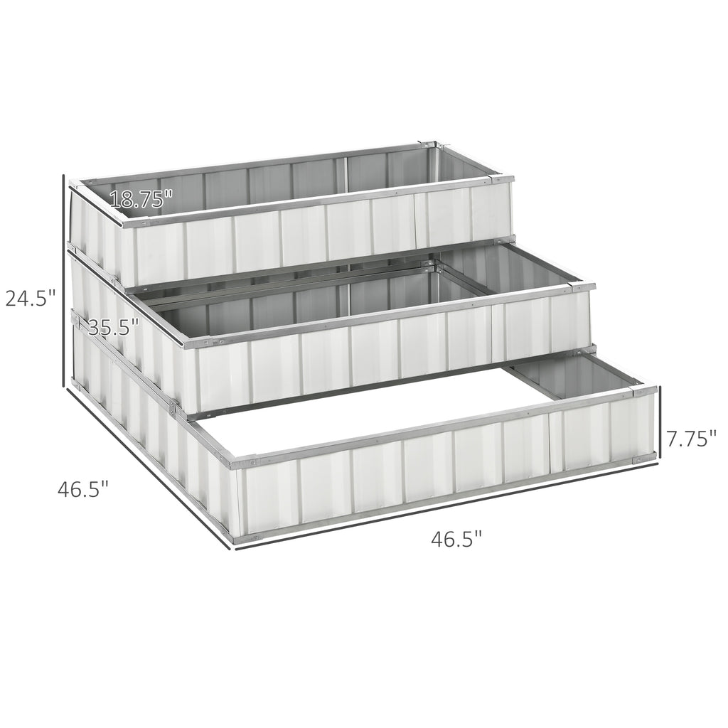47''x47''x25'' 3 Tier Raised Garden Bed, Metal Elevated Planer Box Kit w/ A Pairs of Glove for Backyard, to Grow Vegetables, Herbs, White